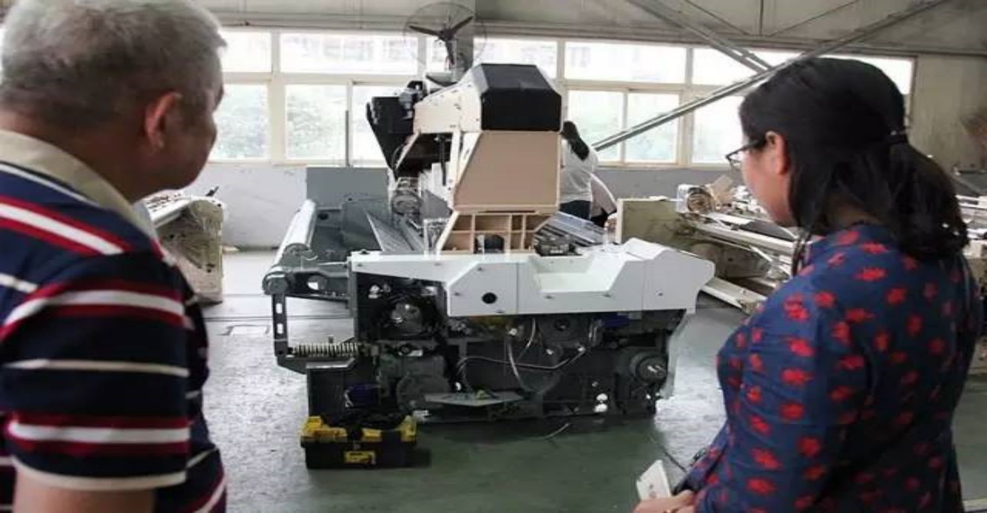 海佳根據(jù)客戶的需求,研發(fā)出個新機型,生產(chǎn)出了幾臺樣機,擺在客戶的車間試用。包括津田駒在內(nèi)的多家織機同時也在試樣。