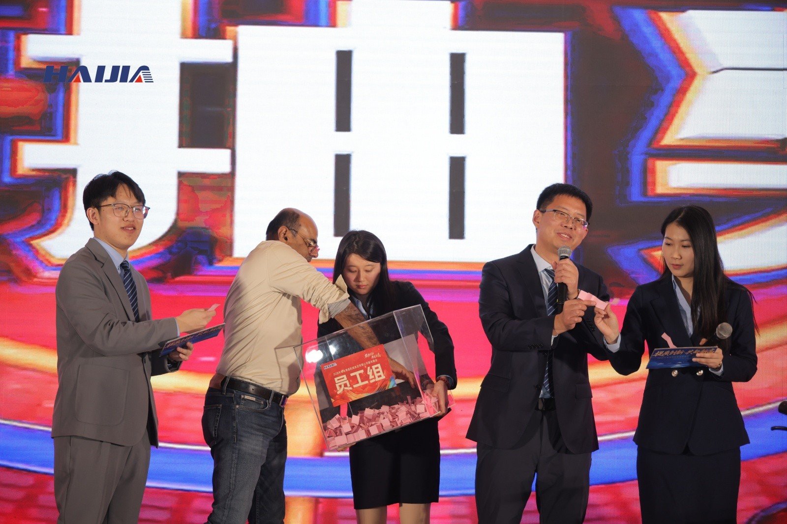 舞臺上員工節(jié)目輪番上演,盡顯團(tuán)隊(duì)風(fēng)采;抽獎環(huán)節(jié)驚喜連連,歡呼聲此起彼伏;互動游戲趣味十足,拉近彼此距離;舉杯敬酒間滿是并肩前行的情誼,歡聲笑語里凝聚起同心